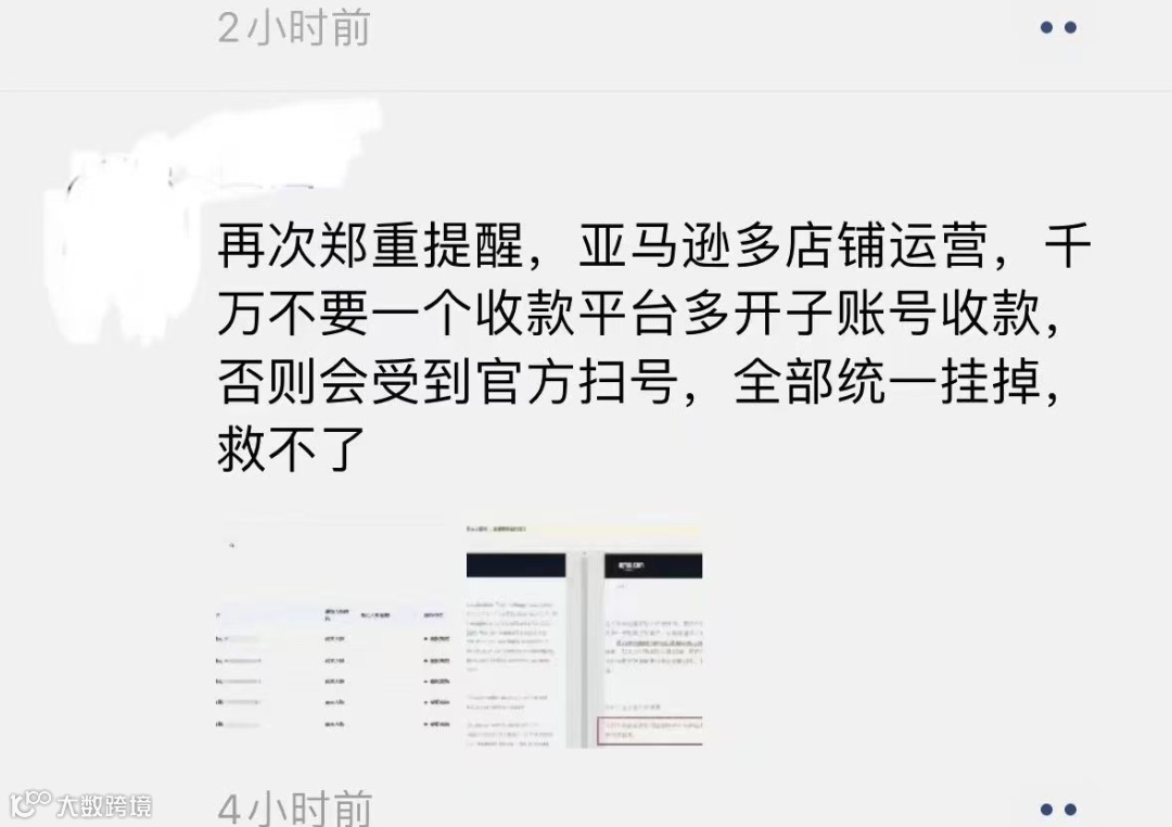 近期有卖家表示自己四个新号被扫死,四个新号都挂掉了,可能与多开子账号收款,被亚马逊查到有关。
