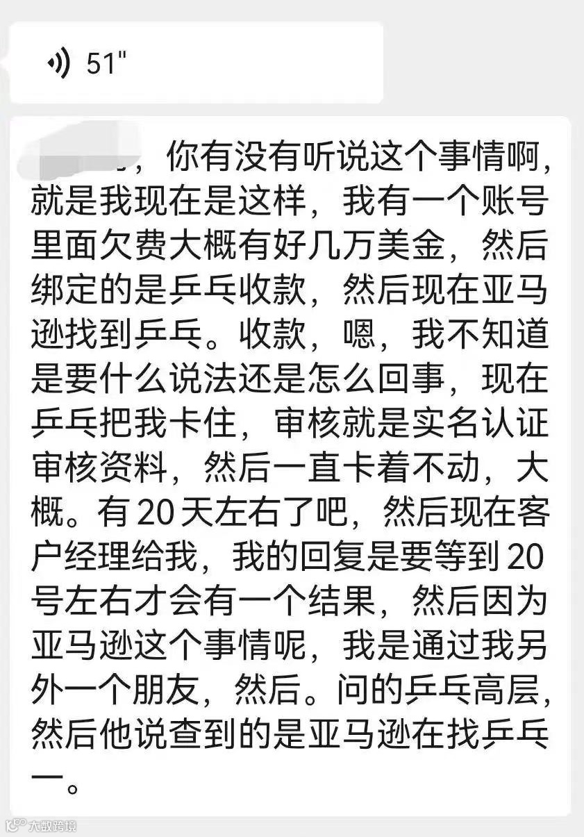 Pingpong事件就是:一位卖家说自己有个账号欠费几万美金,关联绑定的是Pingpong收款平台,疑似亚马逊官方找到了Pingpong平台,而Pingpong平台借用审核的名义,直接无理冻结了该卖家资金。【指路:危险系数飙升!PingPong疑似成为亚马逊打手】