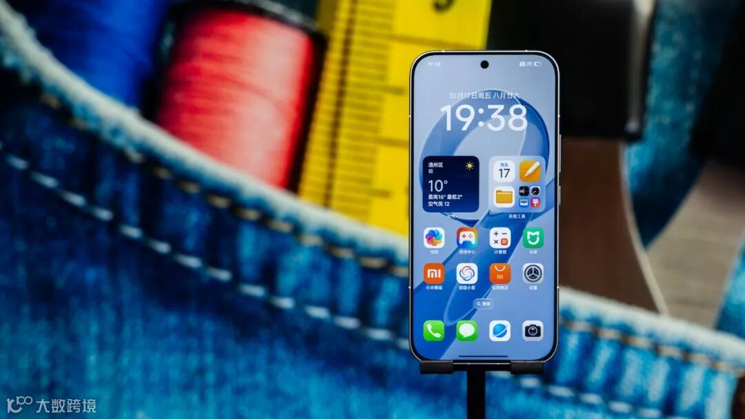 K90 Pro Max 这次有一个特别的配色,也就是我手上的这个『丹宁色』,其实也就是牛仔布风格的配色。其实它的材质用的是之前小米手机上用过的『科纳皮』的升级版本,提升了抗污和耐磨特性。这个配色的真机其实比效果图好看不少,建议大家去线下门店看看。