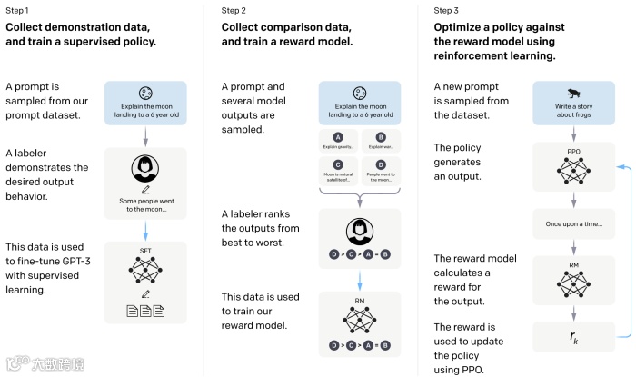 以大家伙最熟悉的ChatGPT为例,其也属于开放领域对话系统的范畴,整个Pipeline如上图所示。不过,除了回答各种问题外,ChatGPT还可用于论文写作、代码调试、表格生成等等。