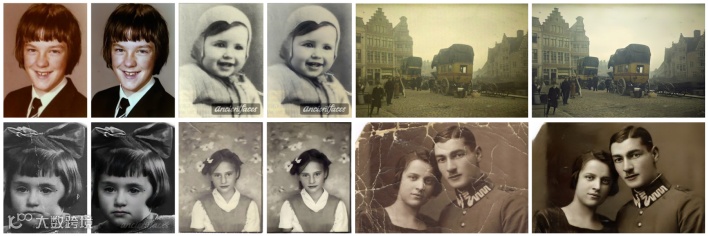 前者的退化类型包括以低分辨率拍摄照片从而丢失了一些细节信息、裁剪了某个区域以及将彩色图像转换为灰度形式等。恢复任务按顺序依次是图像超分辨率、修补和上色。另一类恢复任务旨在消除不良的扰动,如去噪、去雨、去雾、去模糊等。
