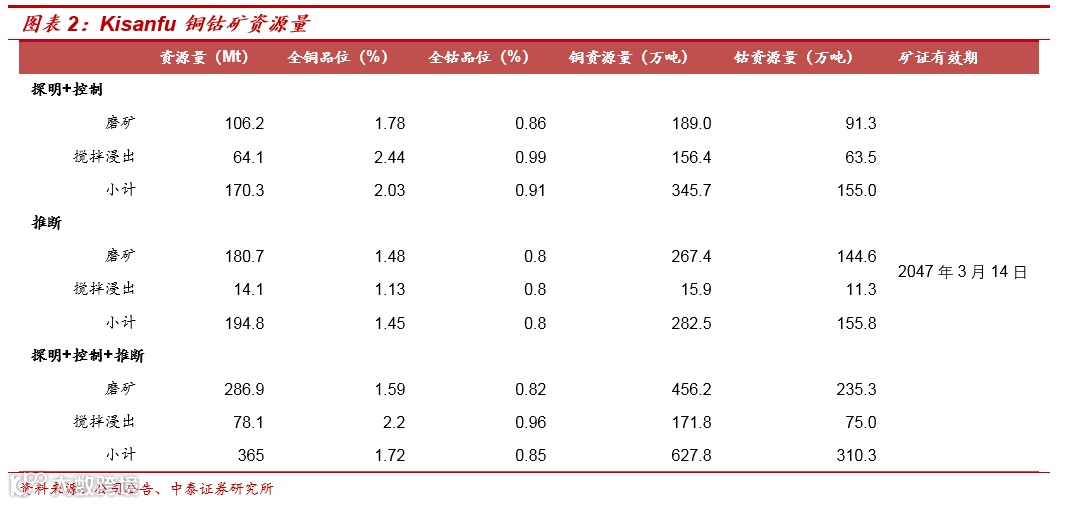 不同于以往A股企业海外收购常遇冷的情况,洛阳钼业此次收购获得二级市场青睐,主要得益于Kisanfu项目本身优质禀赋与公司现有资产的高度协同性[k]。Kisanfu铜钴矿位于刚果(金)卢阿拉巴省,总资源量约3.65亿吨,铜平均品位1.72%,含铜金属约628万吨;钴平均品位达0.85%,含钴金属量约310万吨,显著高于洛阳钼业现有Tenke Fungurume矿(钴品位0.31%),是全球规模最大、品位最高的未开发铜钴矿之一[k]。
