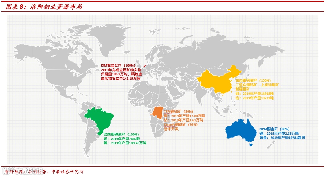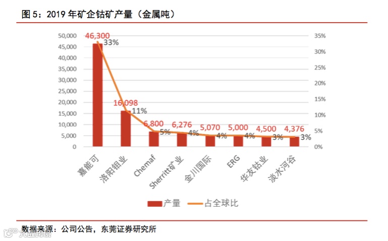 从产业格局看,洛阳钼业目前钴产量约1.6万吨(2019年数据),仅为全球第一大钴企嘉能可(4.63万吨)的三分之一[k]。收购Kisanfu后,公司有望大幅提升钴产能,加速向全球钴业龙头迈进[k]。