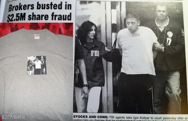 2003年,Supreme以金融诈骗犯Igor Kotlyar穿着Supreme被捕的照片为灵感,加上说唱团体BDP歌曲《Illegal Business》里的歌词“Illegal Business Controls America”,一起印在了T恤上。