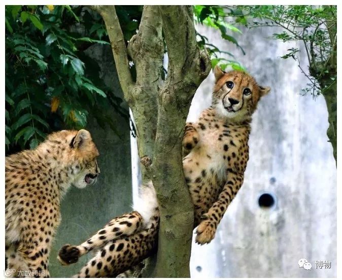 这样的身体结构不但适于急速奔跑,也赋予了猎豹超强的弹跳力——猎豹一般情况下不往树上爬,但它们并不是没有爬树的能力。