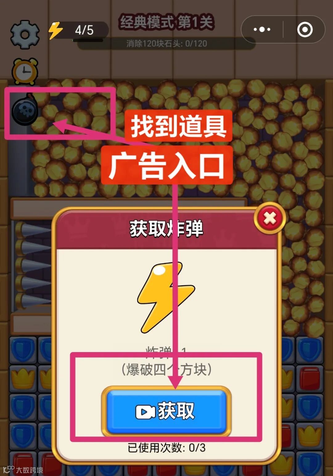 想办法找到看广告入口