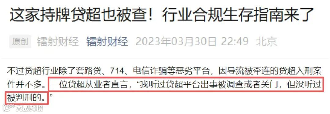 偶然看到一篇2023年的媒体报道,提到贷超业务涉及“套路贷、714、高风险贷款、电信诈骗”等乱象。
