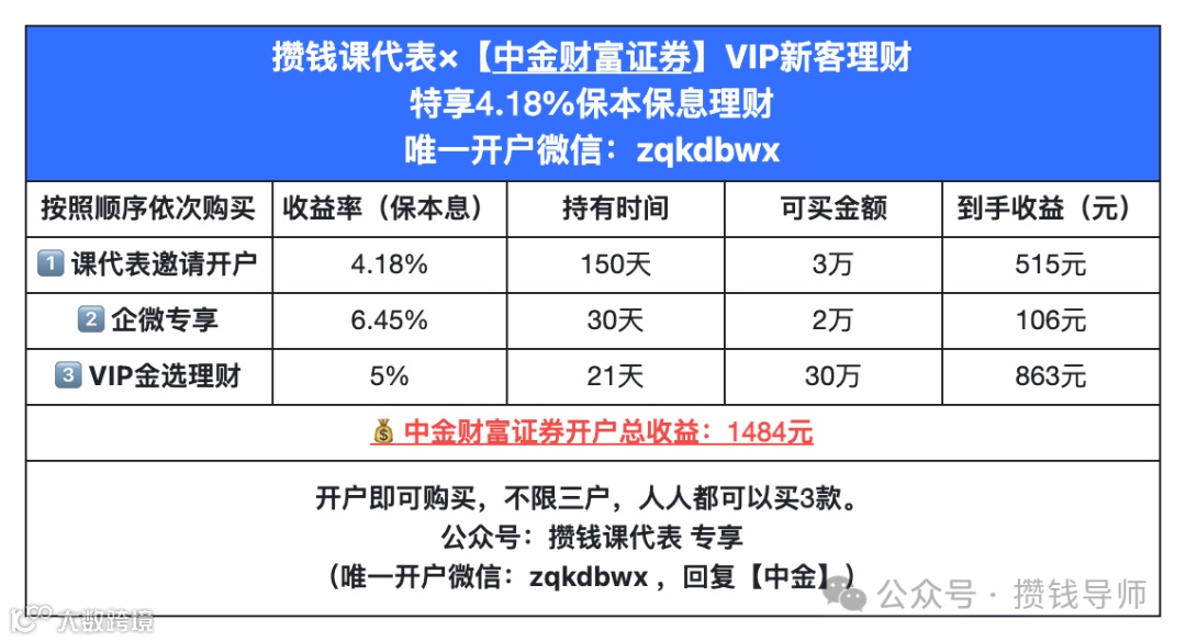 ✅中金财富证券(不买基金不炒股,只买保本新客理财)