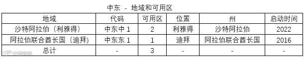 在这些市场中,阿里云在以下地域运营数据中心:沙特阿拉伯(利雅得),称为中东中1,以及阿拉伯联合酋长国(迪拜),称为中东东1。