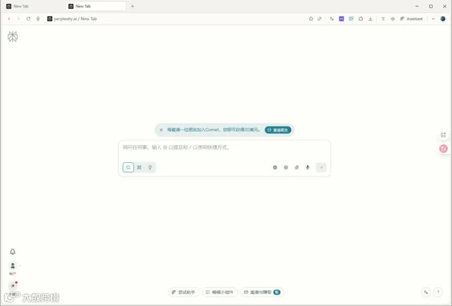 安装完成后,你就可以开始使用Comet这个AI浏览器了: