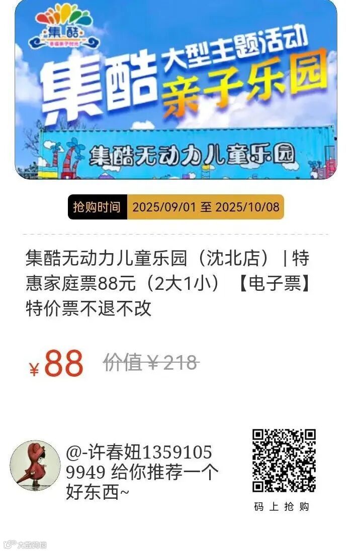 沈阳集酷无动力儿童乐园 |2026年家庭年卡抢先购128元、特价票不退不改