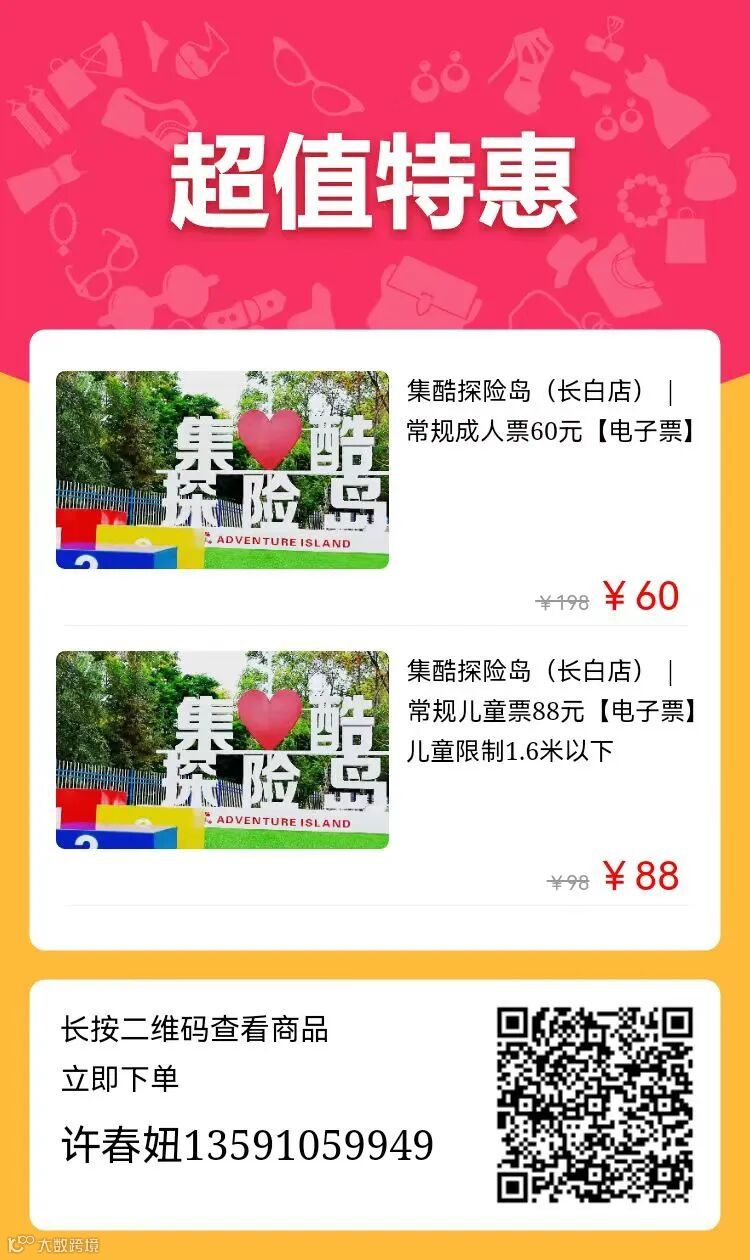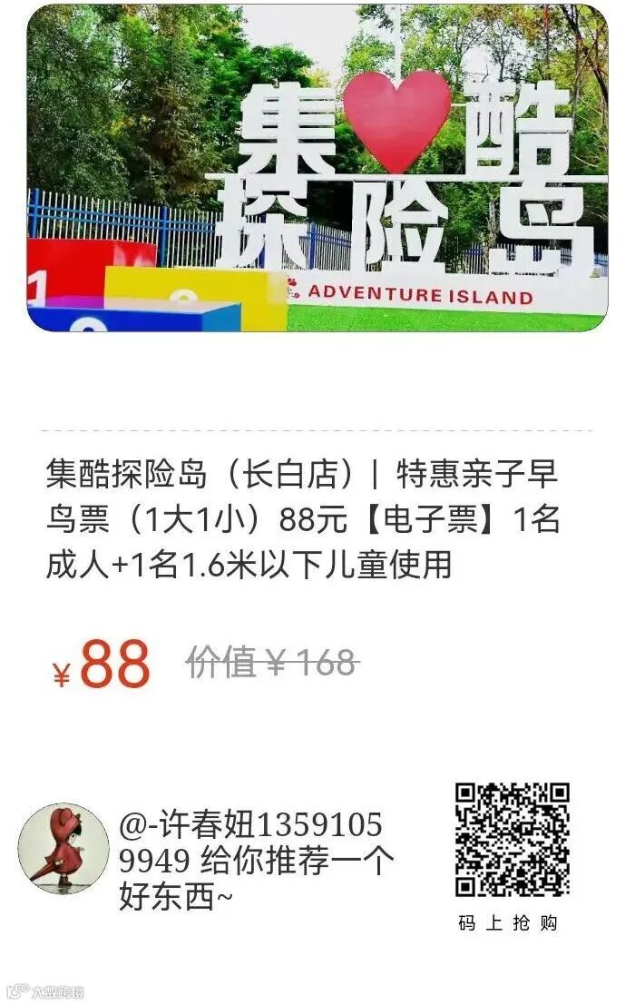 长白集酷探险岛 | 特惠亲子早鸟票(1大1小)88元