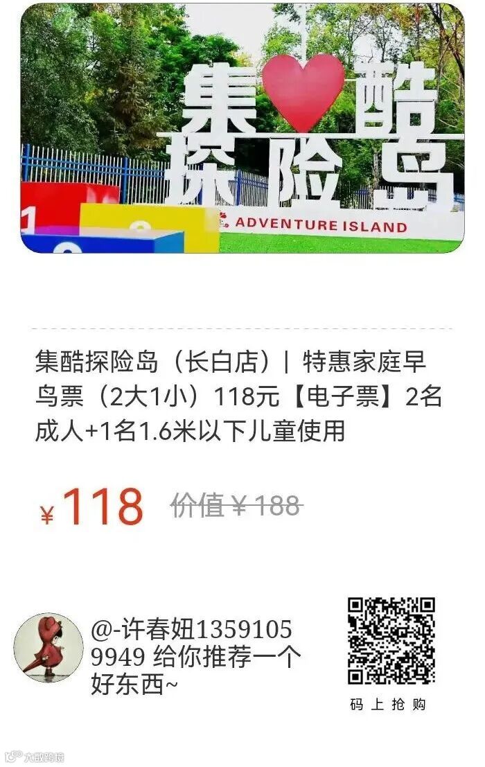 长白集酷探险岛 | 特惠家庭早鸟票(2大1小)118元【电子票】