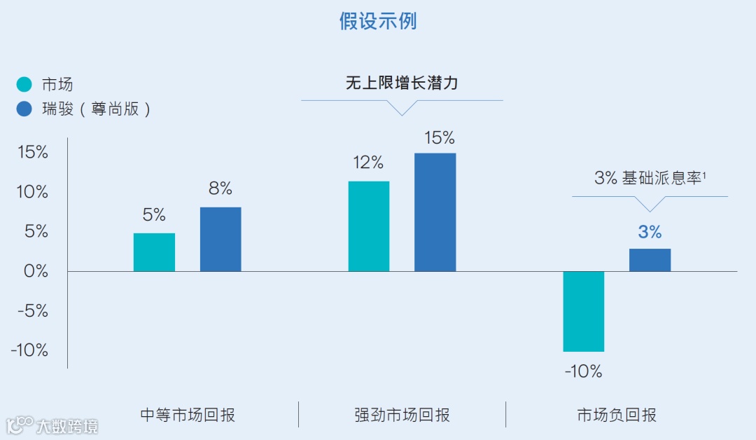 举个例子:市场回报 5%,它的派息率是 5%+3%=8%;市场回报 12%,派息率就是 12%+3%=15%,收益直接跟着市场 “上不封顶”。