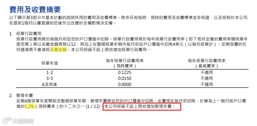 不管是 IUL 还是 UL,收管理费、行政费都很正常,但「瑞骏尊尚版」有个 “隐藏风险”——没规定费用的最高上限。