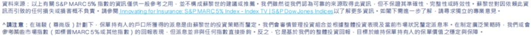 传统纯 IUL 的收益很透明:比如挂钩标普 500,今年指数涨 10%,扣除费用后账户价值就涨 10%,规则写得清清楚楚。但「瑞骏尊尚版」并非直接挂钩指数:它的派息会参考标普 500 MARC5% 指数,但不直接挂钩,最终派息率由保司根据整体投资表现综合厘定。