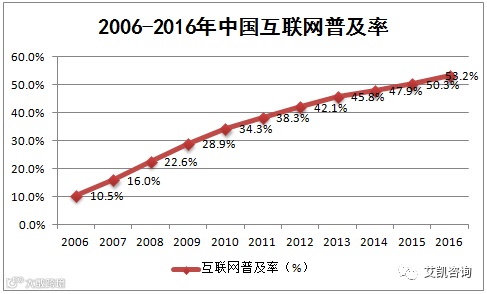 2006年至2016年,中国网民规模持续扩大,近年来增长率趋于稳定,行业整体向规范化、价值化方向发展[k]。政府出台多项政策,推动并规范互联网各细分领域发展,营造良好生态。同时,网民人均消费水平稳步提升,网络消费已成为拉动国内生产总值增长的重要力量[k]。