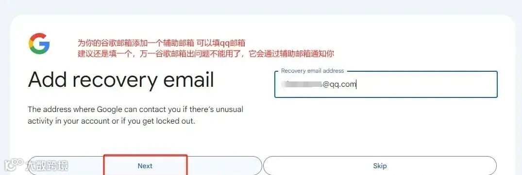 步骤六:添加辅助邮箱,点 Next,我们就完成注册了。