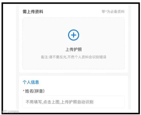 ①上传护照:AI辅助工具能自动识别信息,免出错!