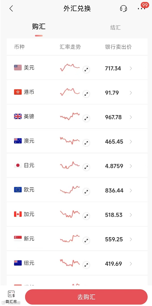 而且每个银行的购汇价格还不一样,如果你有几个常用的银行,可以对比一下看看哪个银行购汇更划算些。