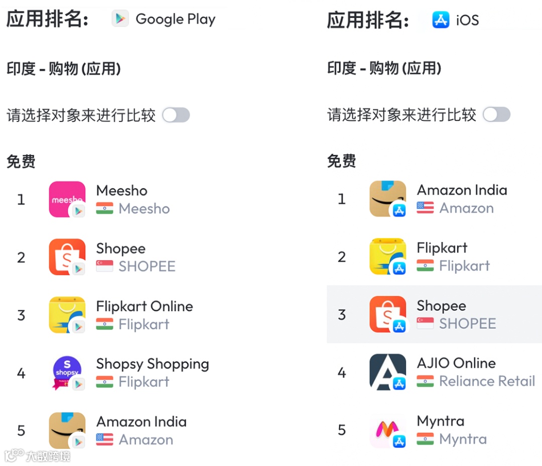 根据data.ai数据,Shopee进入印度后在Google Play下载榜最高排名第2,iOS榜最高第3;目前均已跌出前十[k]。