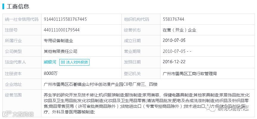 据佳莱科技的工商信息显示,公司成立于2010年。其经营范围包括养生学的研究开发及技术转让;机织服装制造;服饰制造;家用美容、保健电器具制造;其他家具制造;家居饰品批发;化妆品及卫生用品批发;化妆品制造;化妆品及卫生用品零售;清洁用品批发;肥皂及合成洗涤剂制造;纺织品及针织品零售;商品零售贸易(许可审批类商品除外);货物进出口(专营专控商品除外);技术进出口;直销;保健食品制造;医疗、外科及兽医用器械制造。