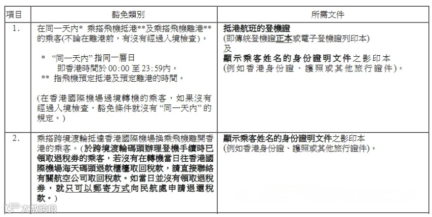 根据香港民航处规定,符合以下条件可申请豁免及退税: