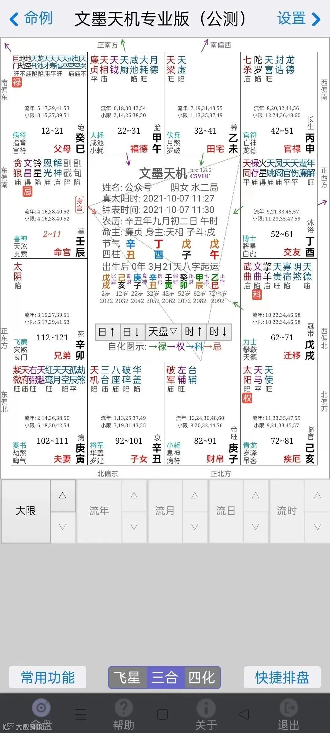 PS:毕竟 测测 不是专门测算紫微斗数的软件(没有四化盘和飞星盘)