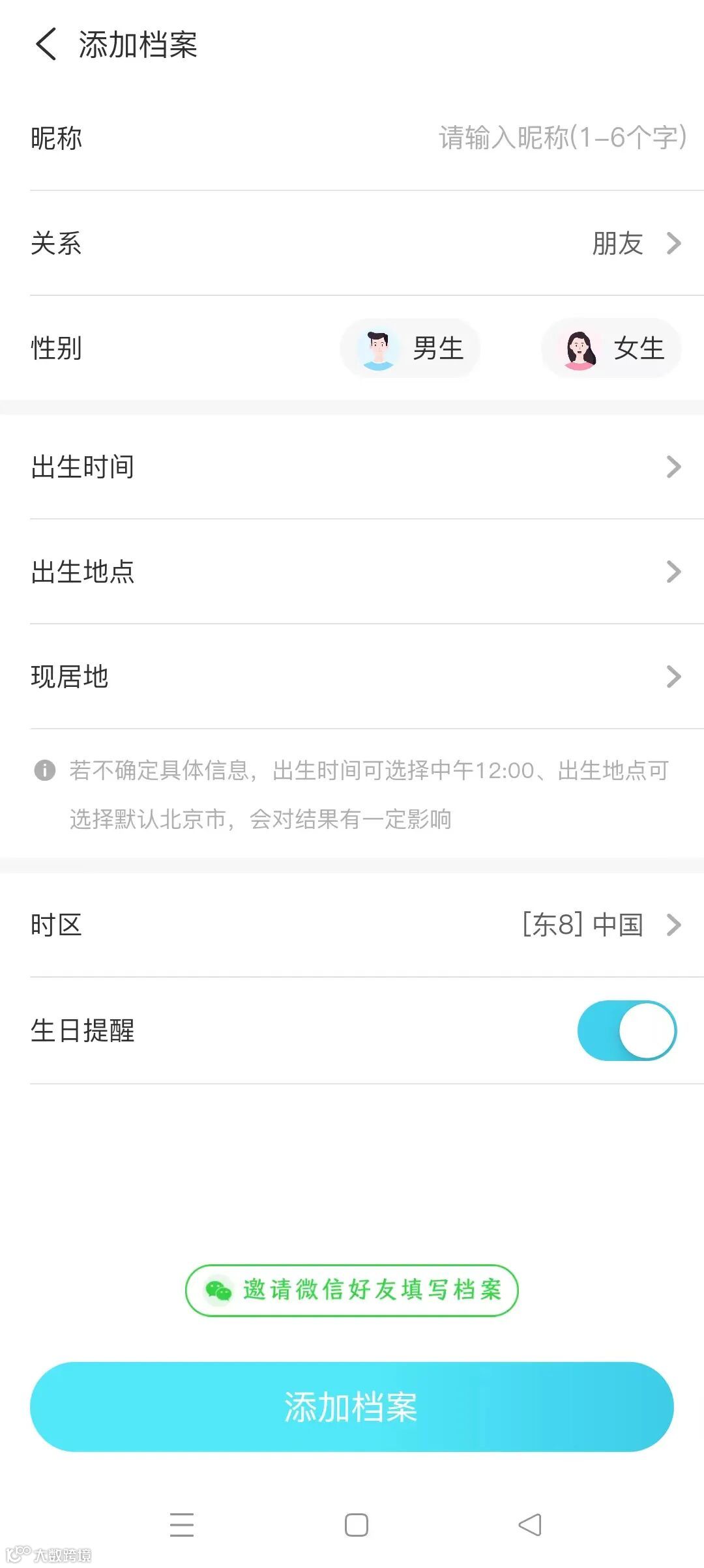 在弹出的界面中输入个人出生年月日时,以及出生地信息即可