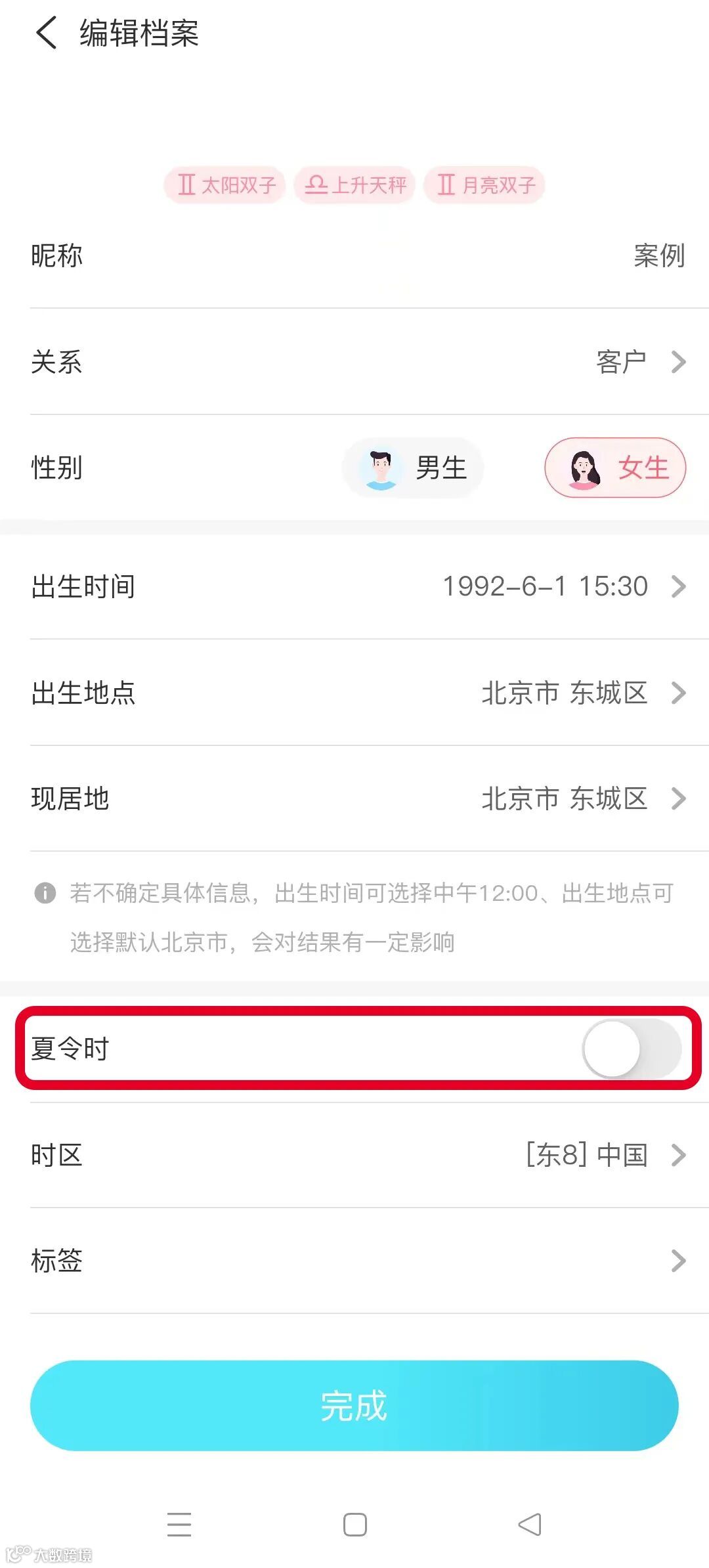 我们需要在案例中把“夏令时”选项的开关打开哈~