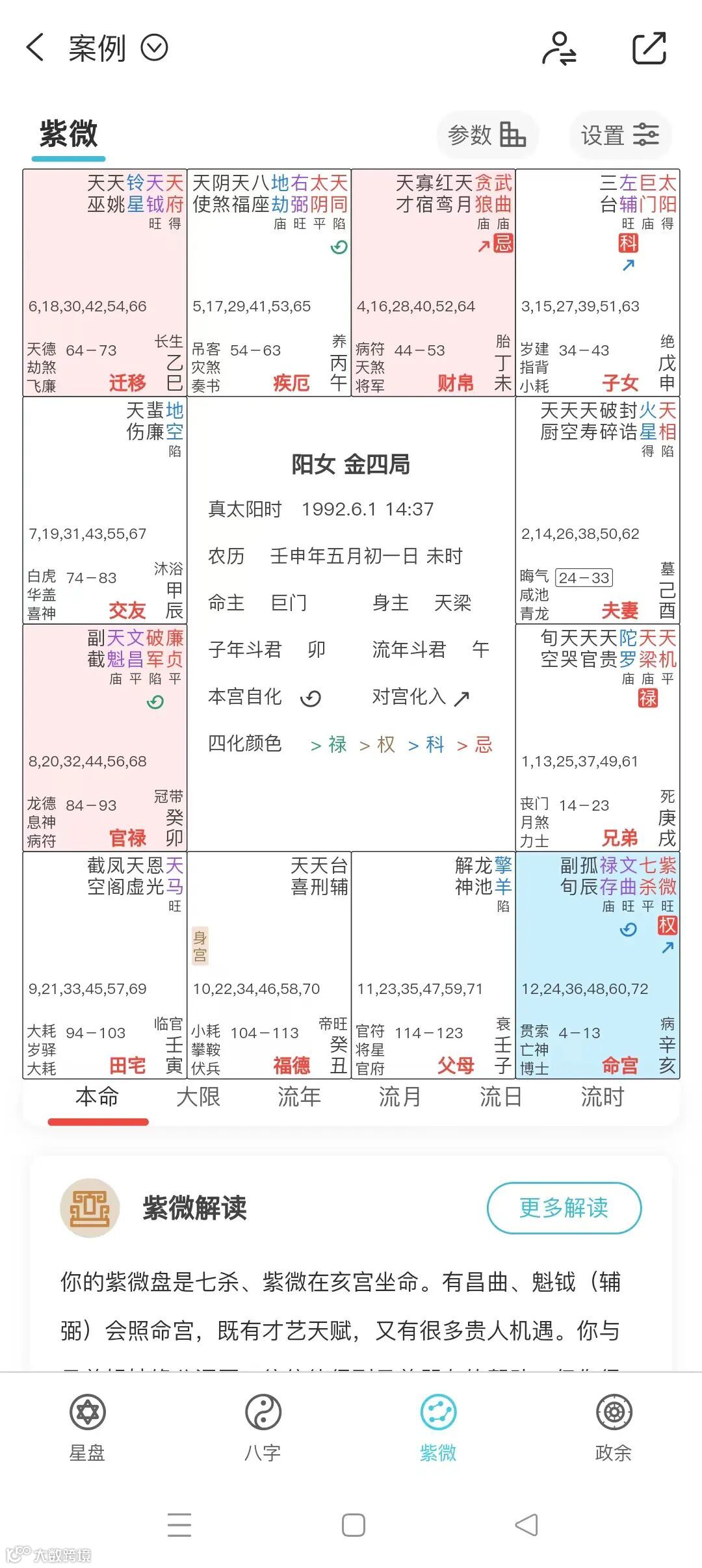 就可以通过上述步骤在测测中得到你的紫微命盘了~