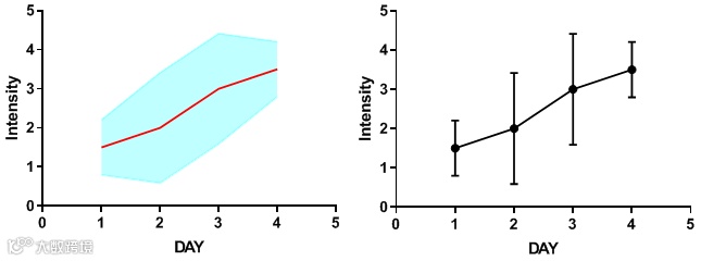 在Prism 9中只需鼠标单击一次既可自动连线并将统计结果添加到图形中,工作效率得到极大的提高。