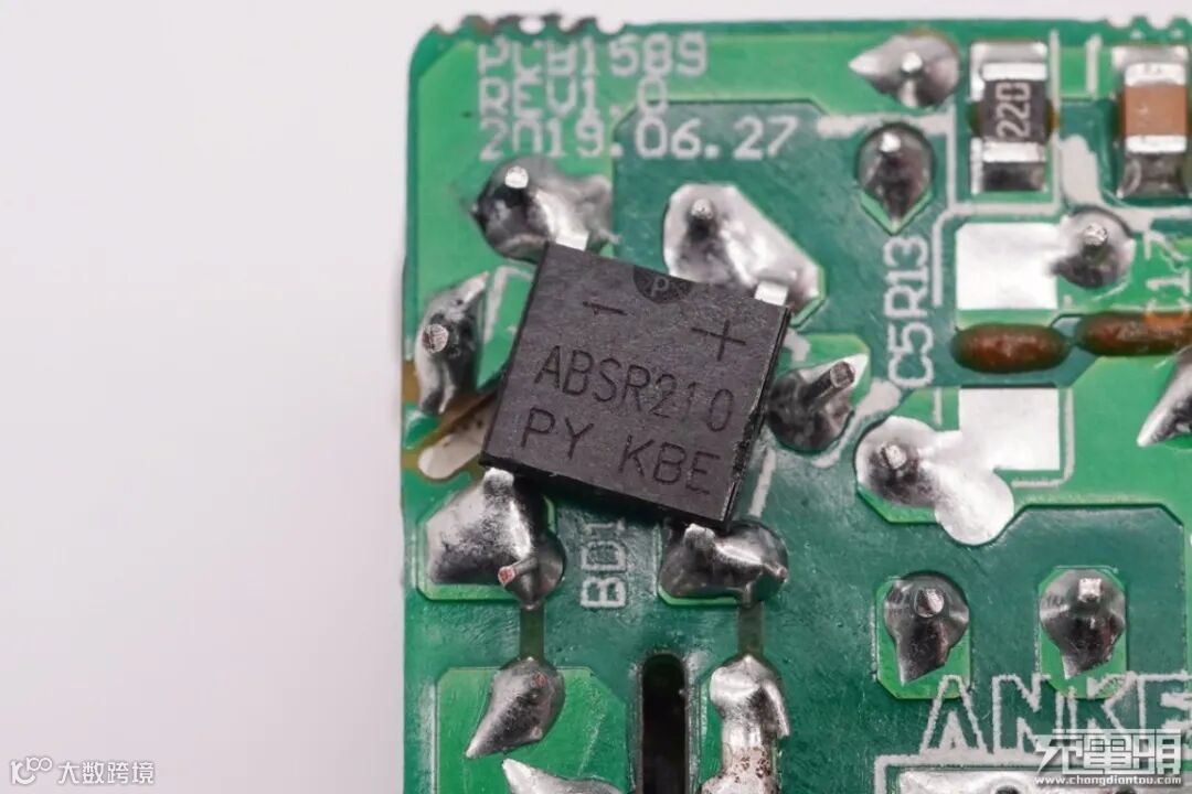 初级小板背面设有一颗整流桥。