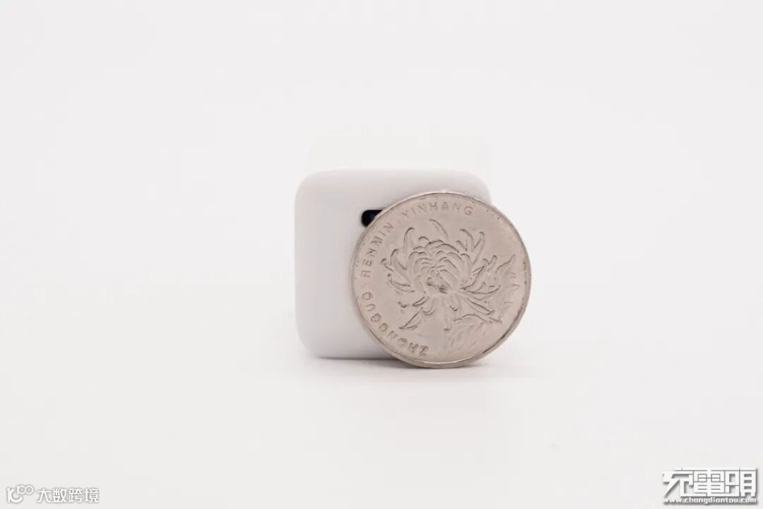 和一元硬币大小直观对比,充电器横截面稍大一点。