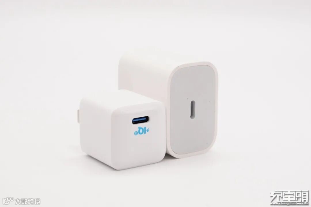 和苹果18W充电器大小对比,体积优势明显。