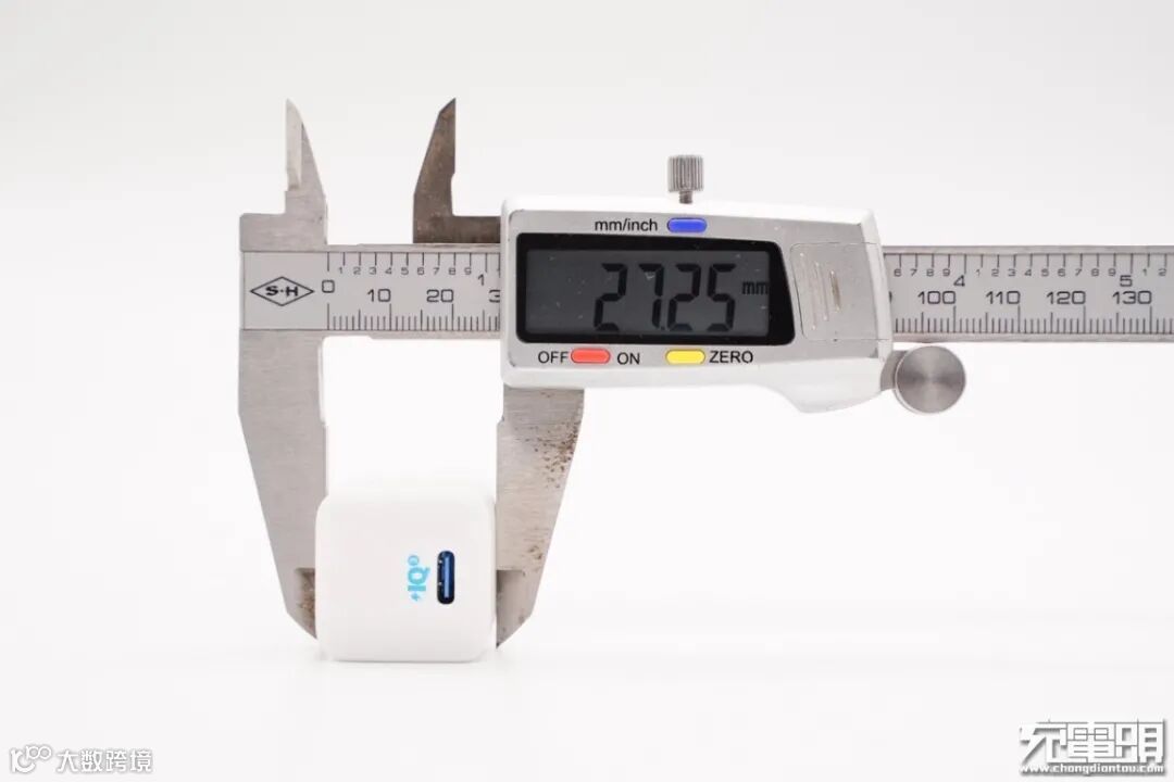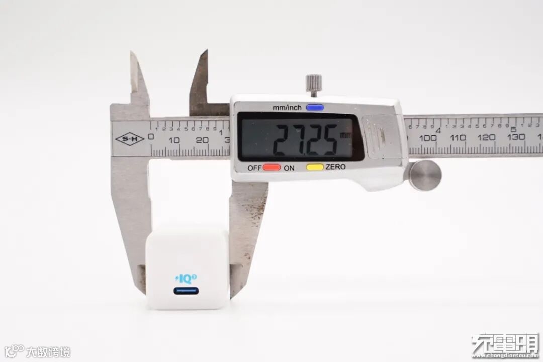 使用游标卡尺实测充电器机身长29.82mm。