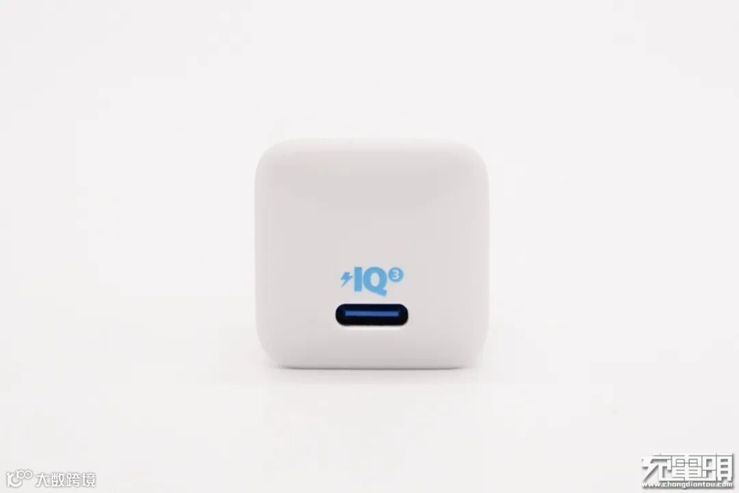 输出顶面配有一个USB-C接口,蓝色胶芯不露铜,接口旁有蓝色闪电标识以及PowerIQ 3.0 logo,辨识度非常高。