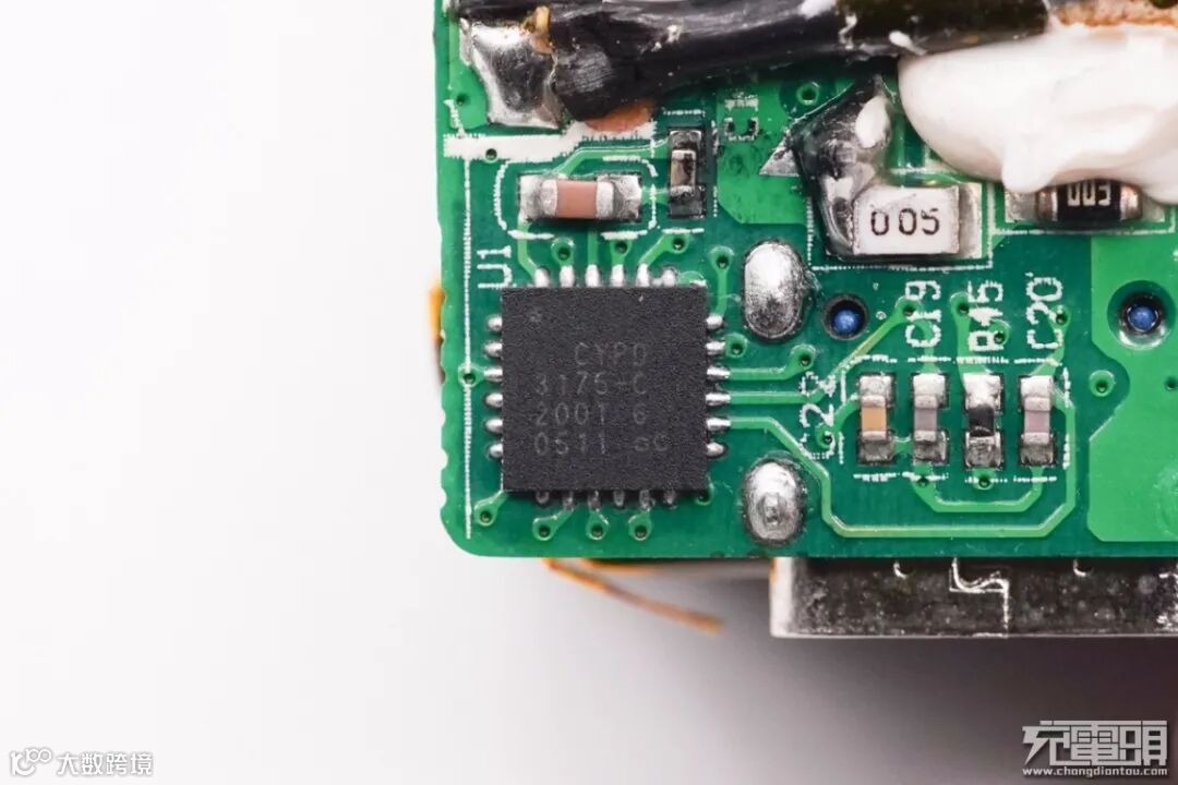 USB PD协议IC采用赛普拉斯CYPD3175,支持1A1C接口,支持QC4.0和其他快充协议,集成次级反馈和输出电流检测放大器,内置多重完善的系统级保护,内置32位MCU,内置时钟,支持宽泛的工作电压范围。