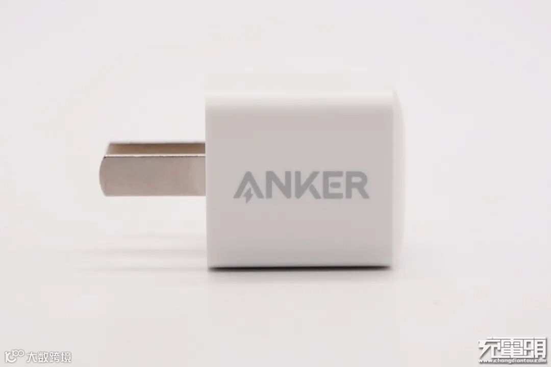 其中一个侧面上设计有Anker品牌,输入端配备固定式国标插脚。