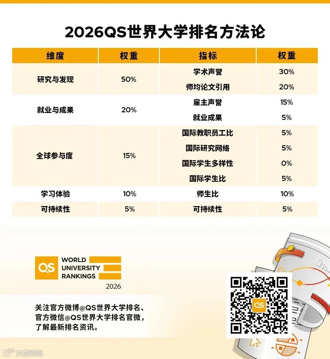 此前,全球高等教育研究机构QS(QuacquarelliSymonds) 发布的2026QS世界大学排名!