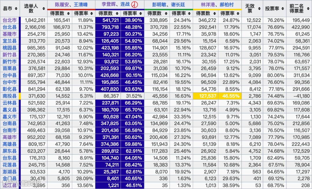 台湾的公共部门、高校、企业,主要集中在北部,农业主要集中在南部和西部,这种产业格局,反映在国民党和民进党的选民基本盘上,就是北部和东部选民更支持国民党,南部和西部选民更支持民进党。