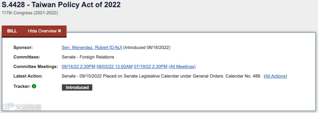 这次加入《国防授权法》中的对台湾省军事援助条款中的绝大部分内容,原本属于去年9月14日以17票同意和5票反对,在美国参议院外交关系委员会通过的《台湾政策法》(S.4428)。