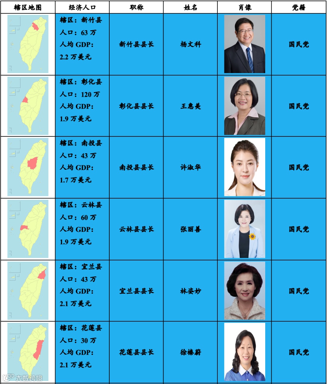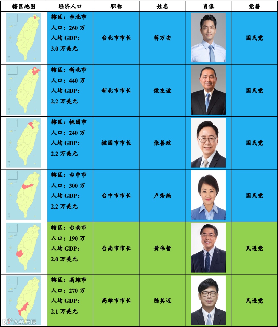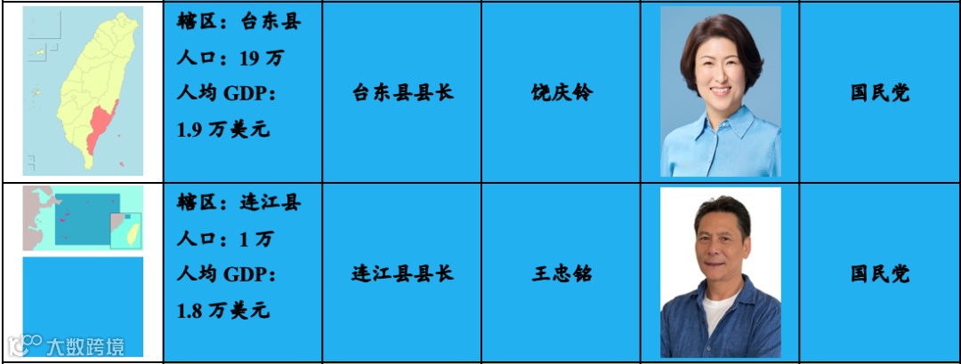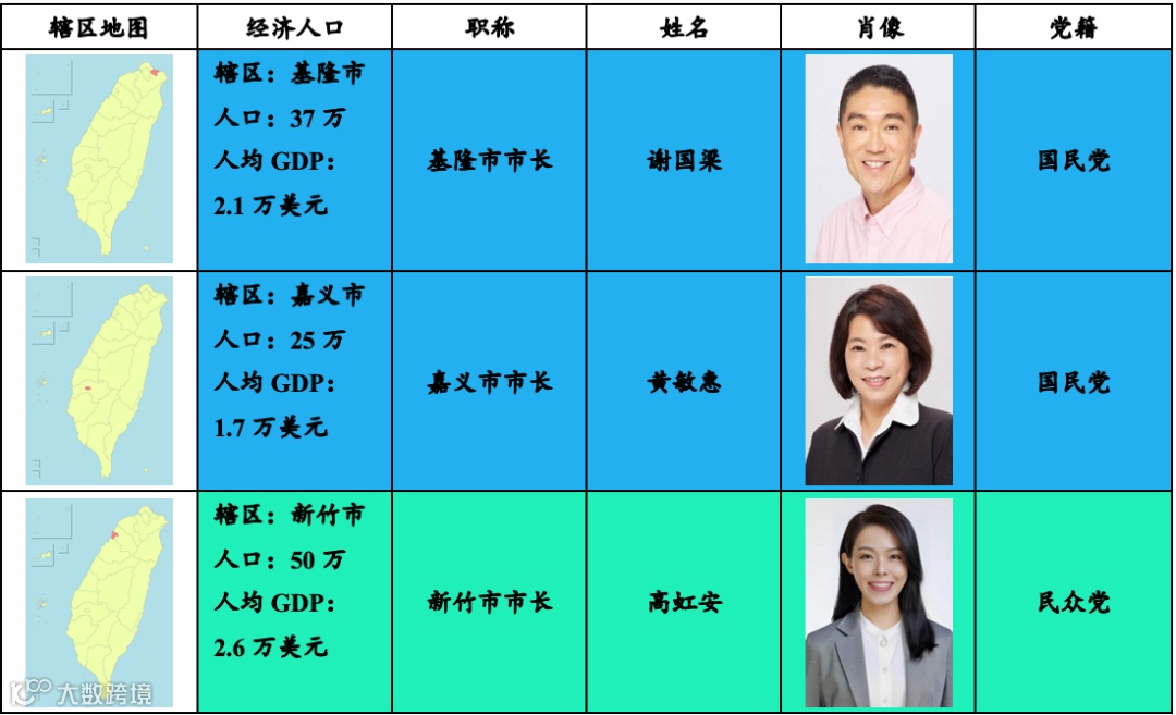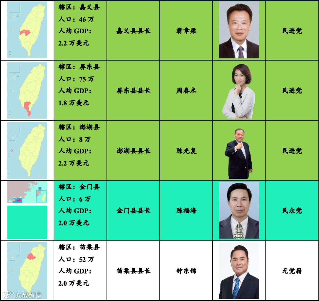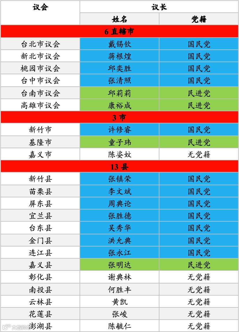 说明:台湾地方政府情况及其所属的派别;来源:自制.