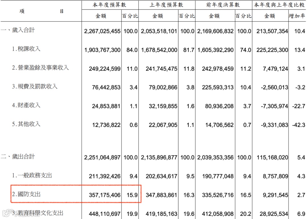 2022年,台湾省伪防务支出约3572亿元新台币,约合125亿美元。除了这笔支出,台湾省伪国防部主管预算、非营业基金、特别预算之和,约为50亿美元。这175亿美元,基本就是台湾省去年全年的伪防务支出。