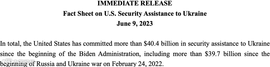 以乌克兰为例。2023年6月9日,美国国防部发布信息,自拜登政府执政以来,美国总共向乌克兰提供了404亿美元的所谓安全援助,其中包括自2022年2月24日俄乌战争开始以来的397亿美元。
