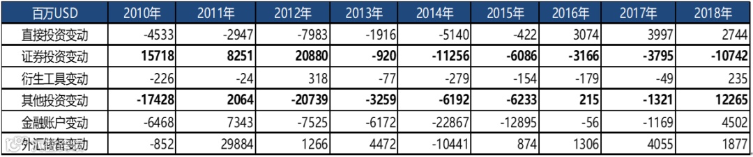 附:自2010年以来金融投资账户以及对外汇储备影响分析