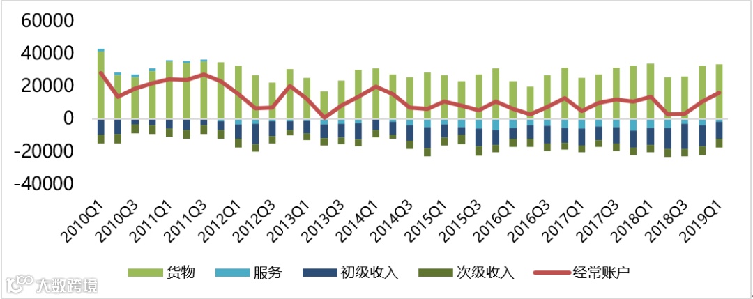 1.2服务:涵盖的主要是知识产权、货运服务、旅行收入等。自2011年后由正转负,但整体占比较小。