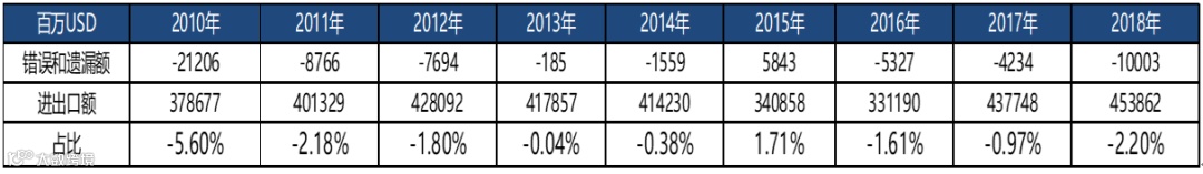 附:自2010年以来错误和遗漏以及对当年进出口额影响分析