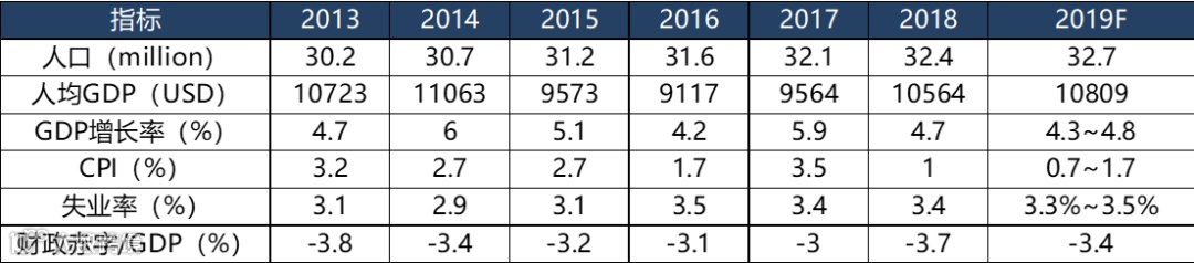 虽2017年起国内政治丑闻影响逐步消退,但受到中美贸易战的影响,经济无新增长点,增长率逐渐回落且不及预期。